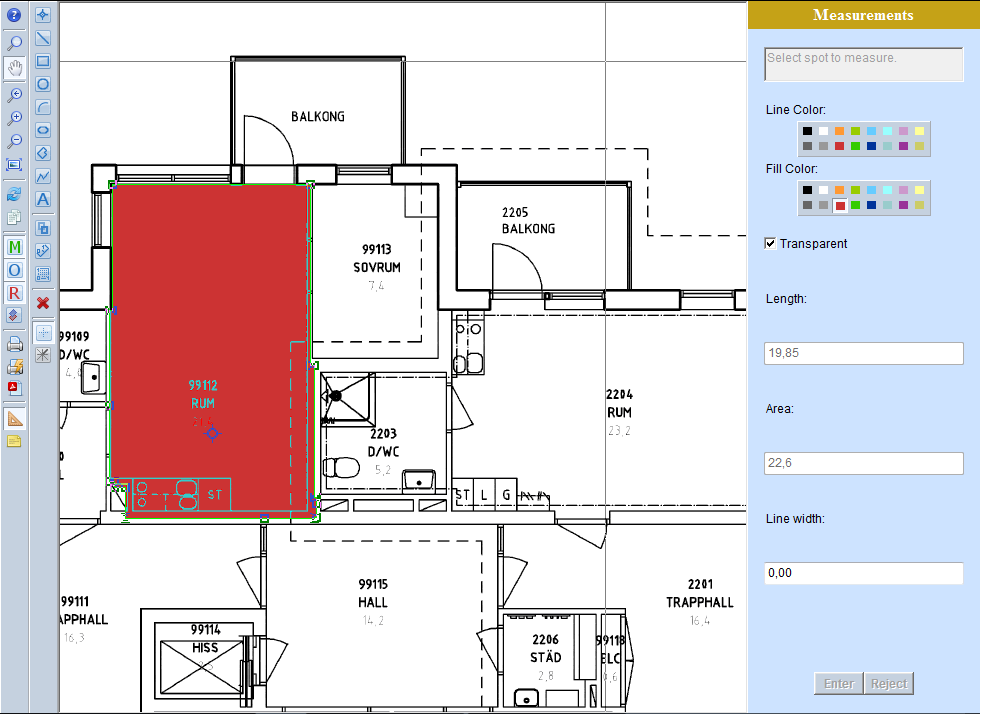 Click Measurements Drawing active button once again to close the Measurement mode.